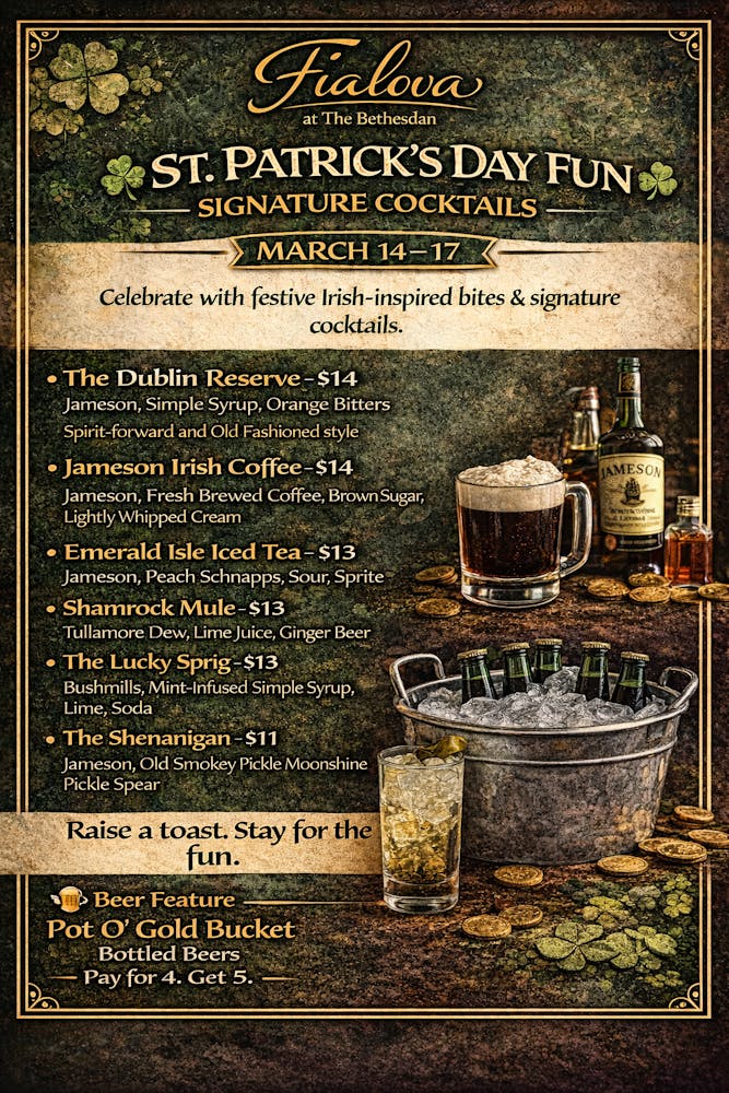 Festive cocktails. Irish comfort classics. Elevated celebration in the heart of Bethesda.